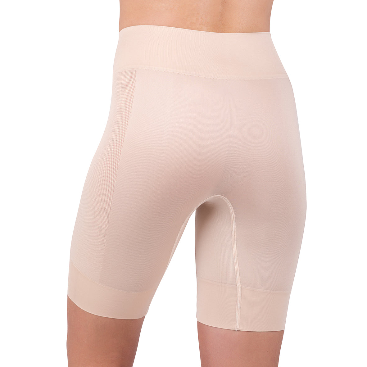 A very soft lightweight short, that stays in place and doesn’t roll up. The leg length is long enough to prevent skin on skin contact and short enough to stay hidden when wearing above the knee hemlines. No side seams ensures smooth lines and makes for the ultimate in comfort.