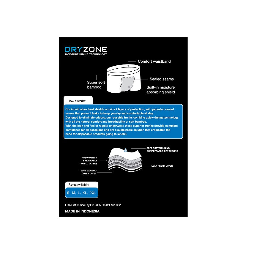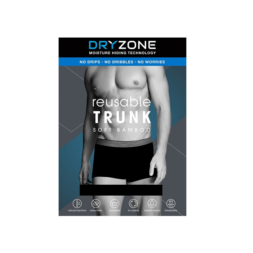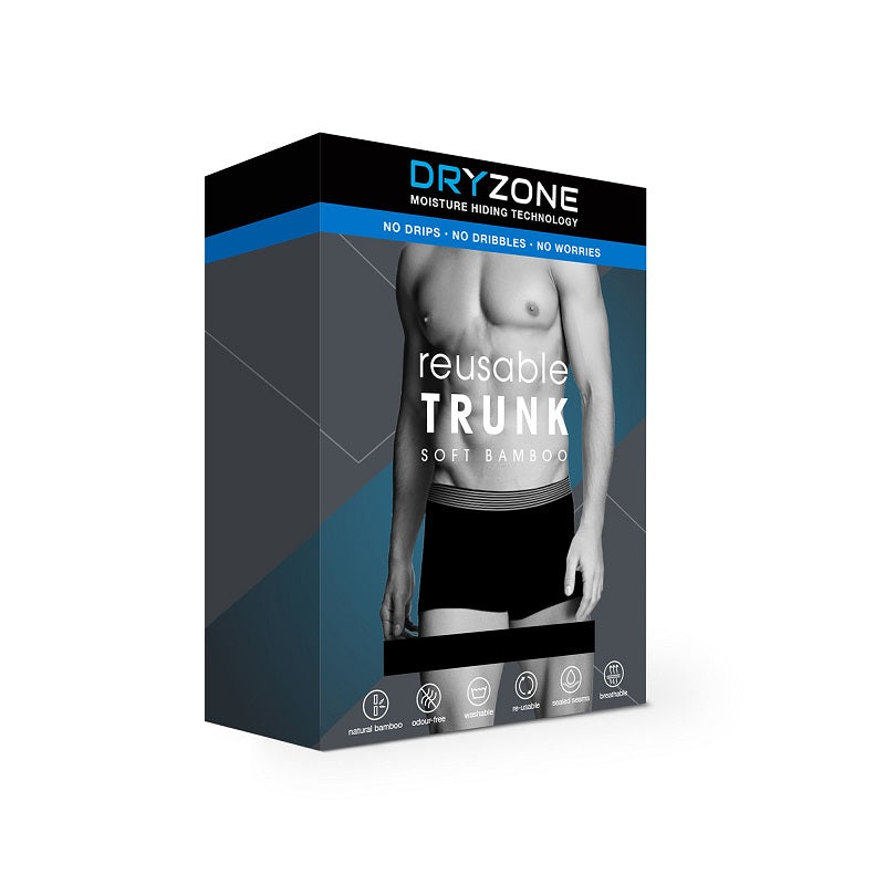 Dryzone light bladder leak trunks have an inbuilt moisture-absorbing shield, designed to absorb light bladder leaks, drips and dribbles.
